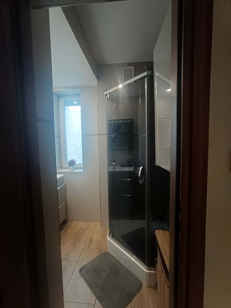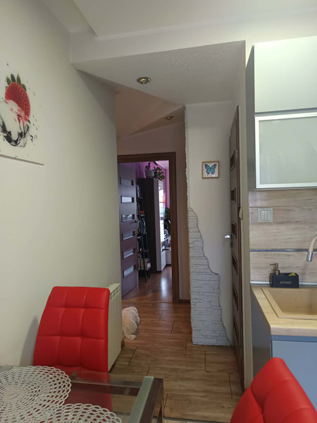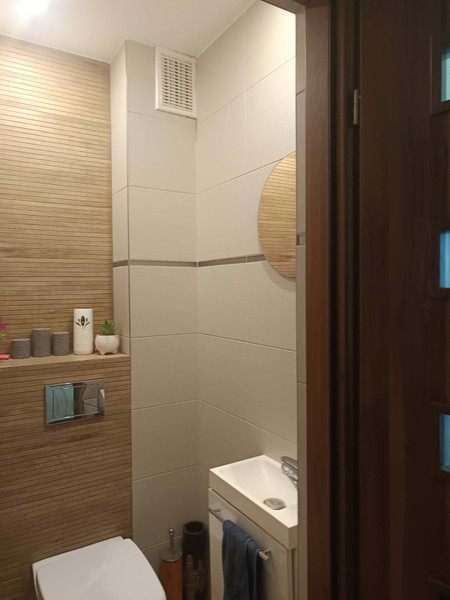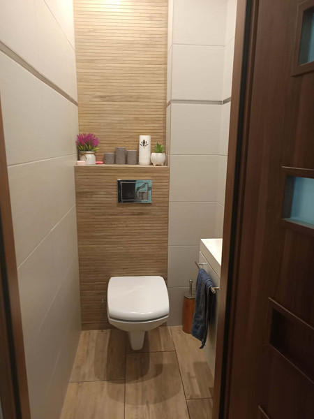 W pokojach położone są panele, natomiast w kuchni, przedpokoju, łazience i toalecie eleganckie kafelki. We wszystkich pokojach zamontowane są rolety. Okna nowe plastikowe. Do mieszkania prowadzą podwójne drzwi. Drzwi wewnętrzne antywłamaniowe z zamkiem witex.