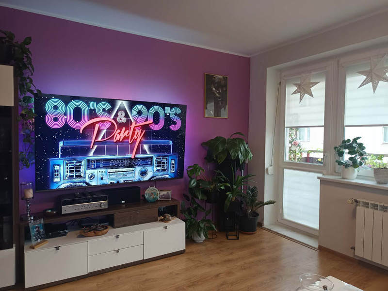 Salon jest bardzo jasny i przestronny – dodatkowe okno sprawia, że pomieszczenie jest doskonale doświetlone. Z salonu wychodzi się na balkon z pięknym widokiem na las, gdzie można odpocząć po pracy i podziwiać zachody słońca.