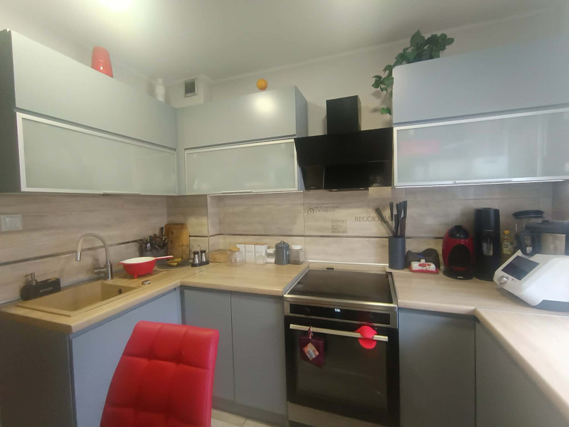 Kuchnia jest zadbana, jasna i funkcjonalna, z pełnym wyposażeniem.