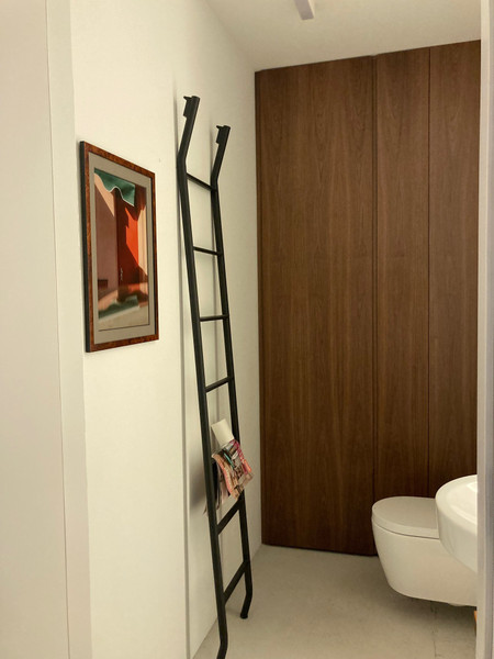 Toaleta wyposażona w wysokiej klasy ceramikę sanitarną oraz armaturę, zabudowa w naturalnej okleinie orzechowej. Osobna kuchnia wyposażona w niezbędny sprzęt agd.