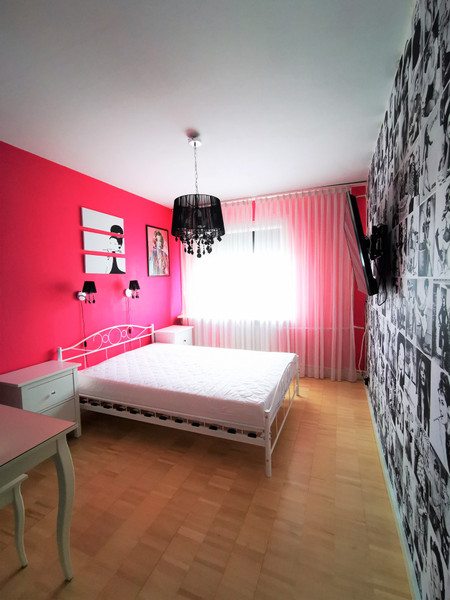 - Duża sypialnia z miejscem na 2 osobowe łóżko, szafę i toaletkę