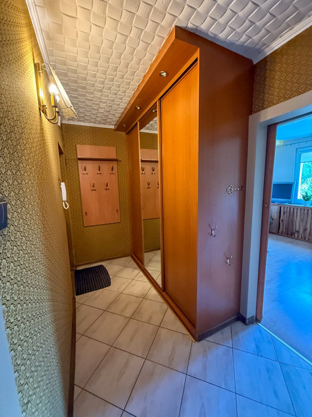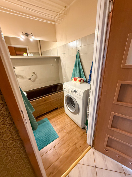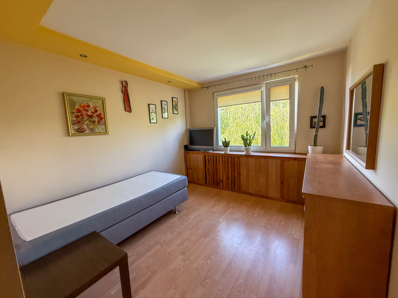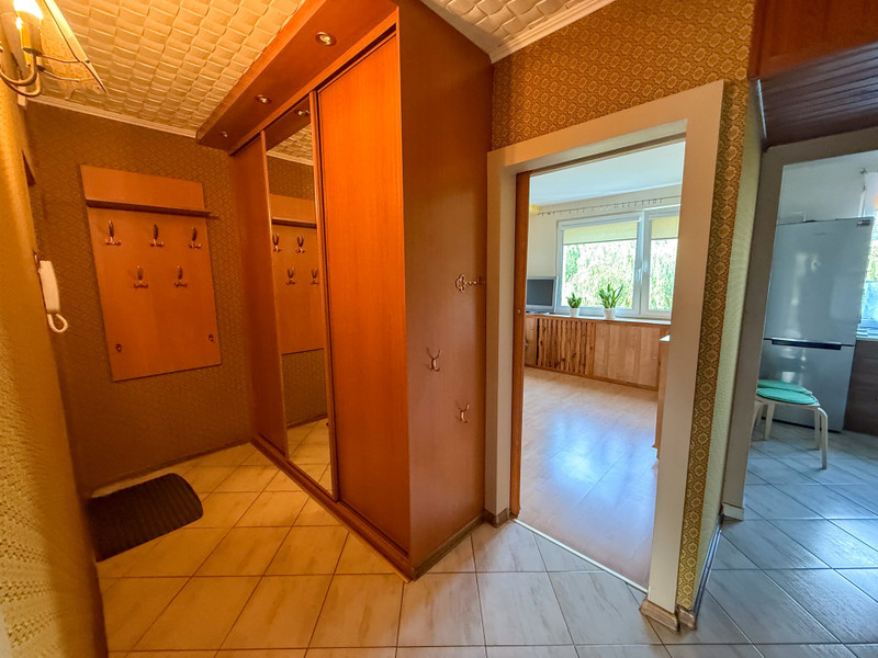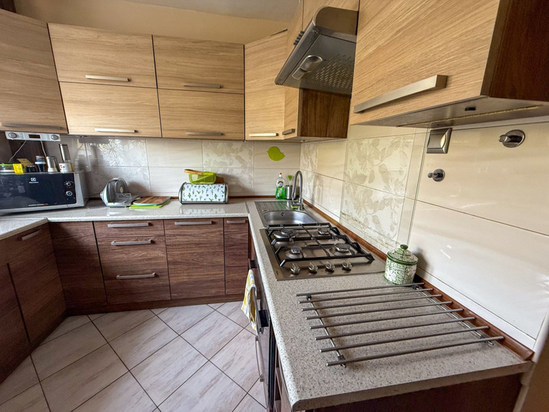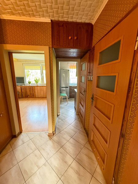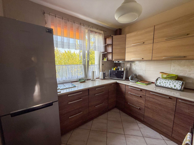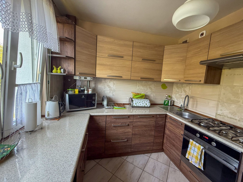Mieszkanie jest w pełni rozkładowe i dwustronne – okna wychodzą na północ i południe, co zapewnia dobre doświetlenie o różnych porach dnia. Lokal znajduje się na 3. piętrze bloku. Oddzielne pomieszczenia łazienki i WC. Przedpokój wyposażony w szafę typu Komandor. Kuchnia po generalnym remoncie z nowym sprzętem AGD (lodówka, zmywarka, kuchenka gazowa, piekarnik elektryczny, okap elektryczny, mikrofalówka).