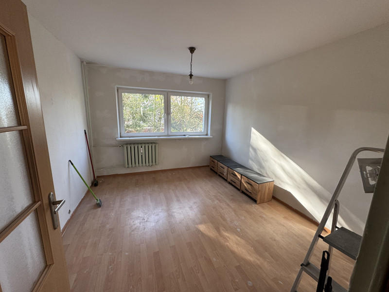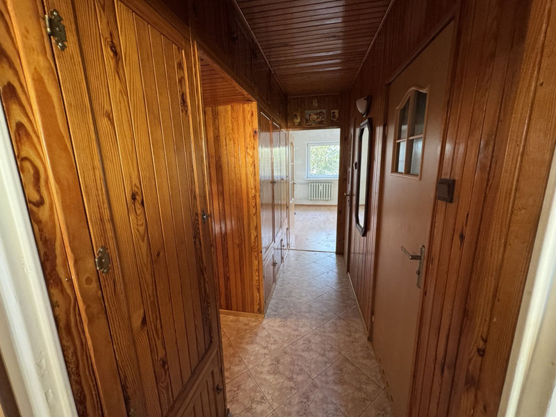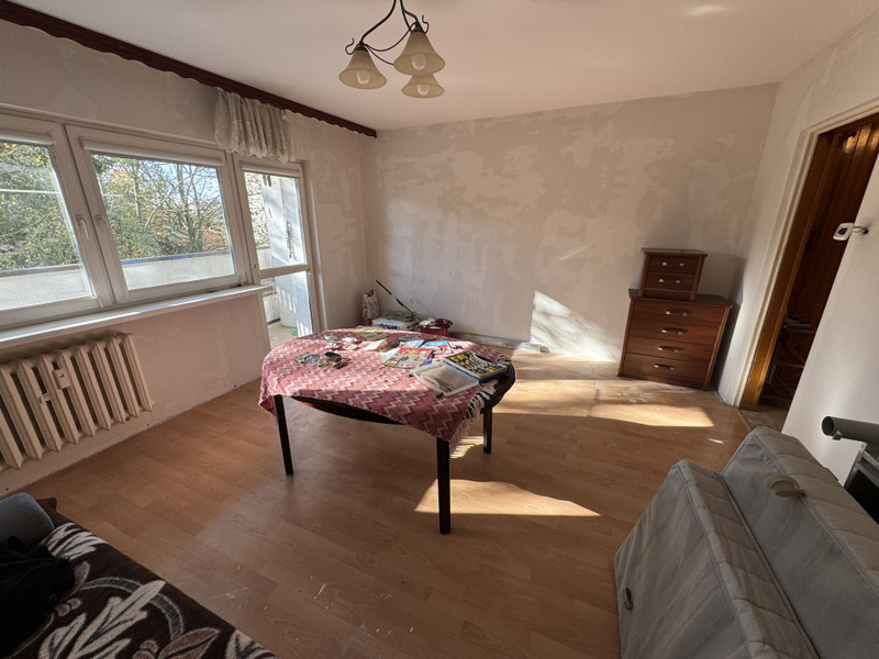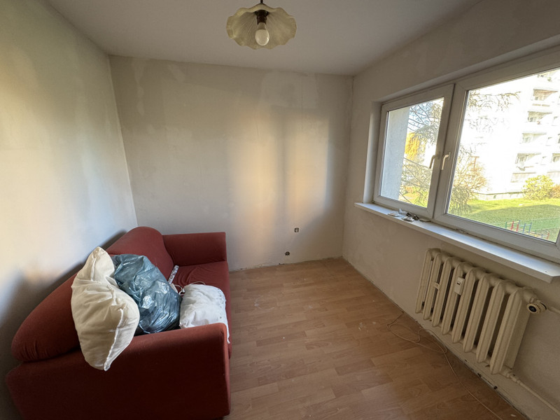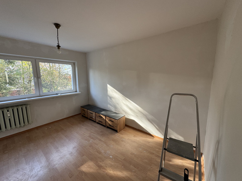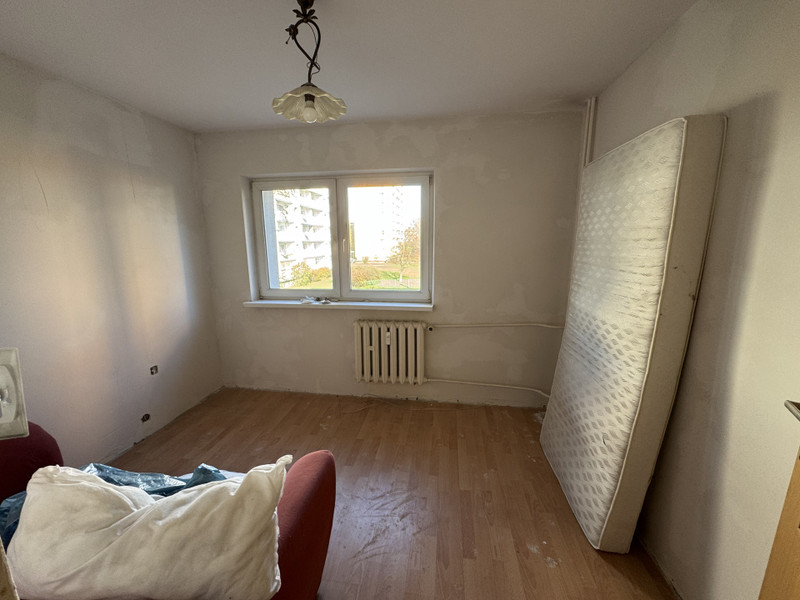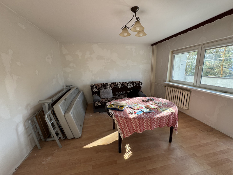 Mieszkanie jest do remontu - w ostatnim czasie położone zostały gładzie, ale trzeba je jeszcze dokończyć. Do wymiany podłogi (panele podłogowe). W przedpokoju drewniana boazeria z szafami i pawlaczami - jeśli komuś odpowiada taki styl, to jest w dobrym stanie i można ją niewielkim kosztem odświeżyć.