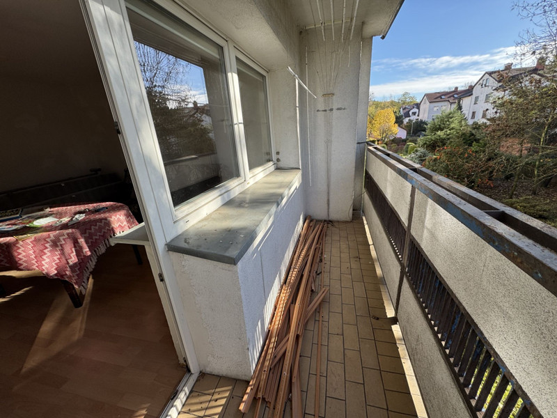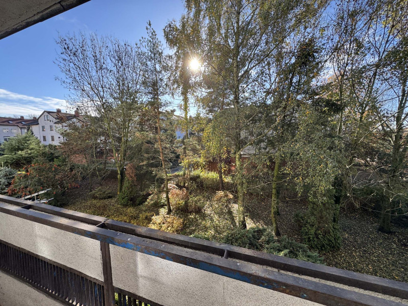 Balkon na całą długość salonu z pięknym widokiem na zieleń, do mieszkania przynależy komórka lokatorska w podpiwniczeniu bloku.