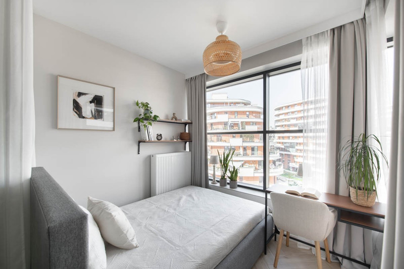 The apartment is situated in a perfectly connected area, directly next to the Vistula Boulevards, with full commercial and service infrastructure.