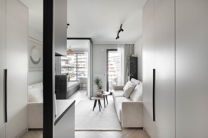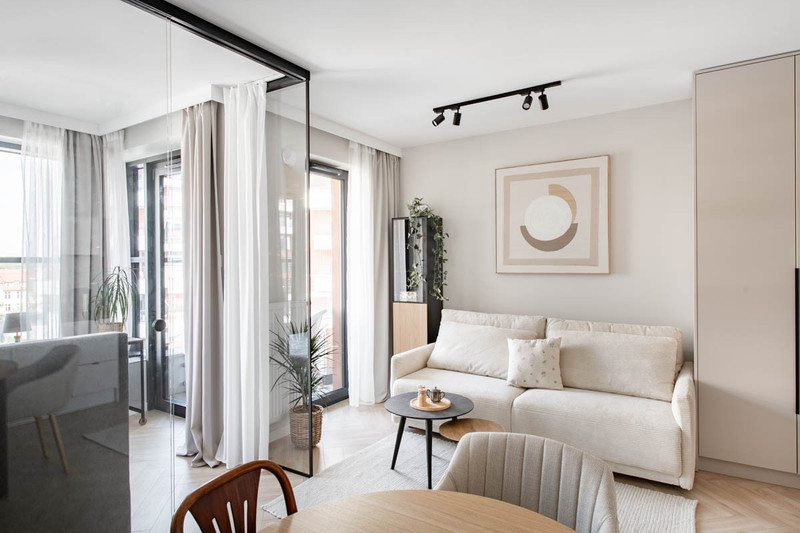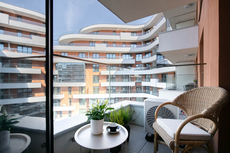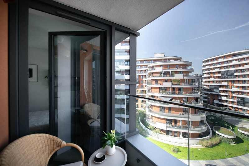 • Duże panoramiczne okna i balkon z widokiem na cichy dziedziniec