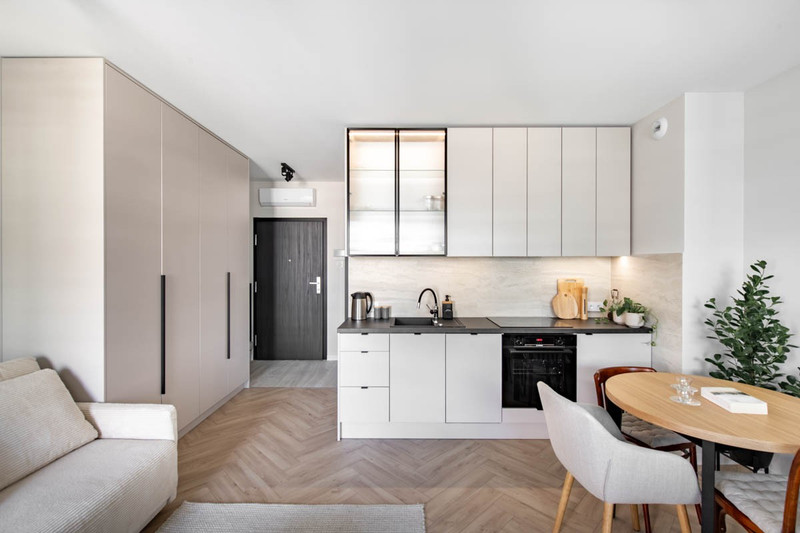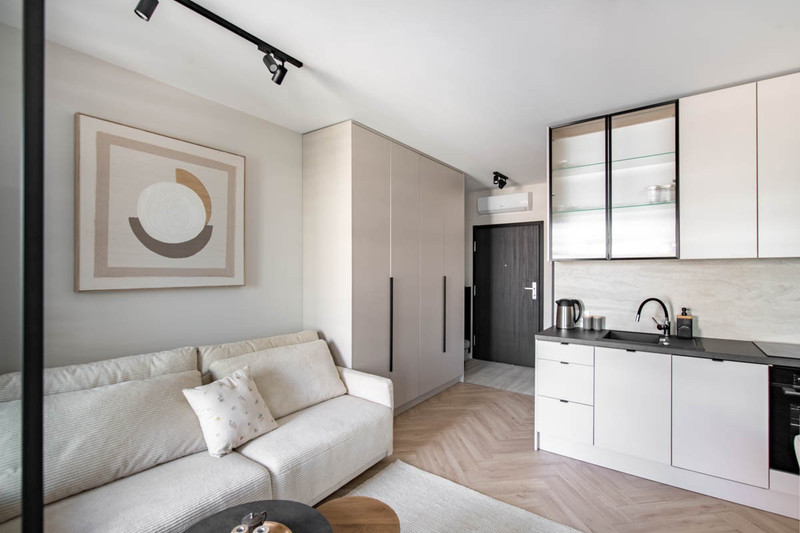 For sale: a new, comfortable, and functionally furnished apartment with an area of 32.69 m², located on the 5th floor of a modern building with an elevator, in an excellent location — in the city center, at Grzegórzecka Street 69E, in the prestigious Wiślane Tarasy 2.0 development.