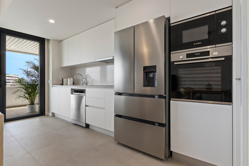 Przestrzeń i design: apartament urządzony w nowoczesnym stylu, z dużym tarasem i jasnym salonem, który otwiera się na duży taras z panoramicznym widokiem na morze Alborańskie i Malagę.