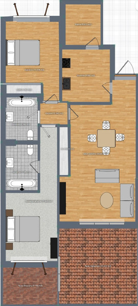 130 m² | 2 sypialnie | 2 łazienki | Ogródek 45 m² | Taras