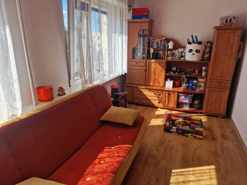 W pokojach na ścianach znajdują się gładzie pokryte powłoką malarską, a na podłogach panele.