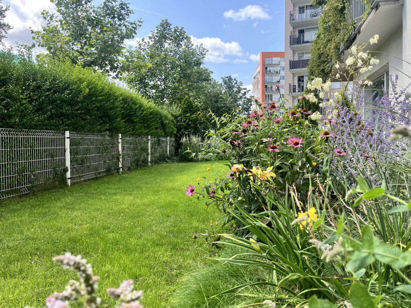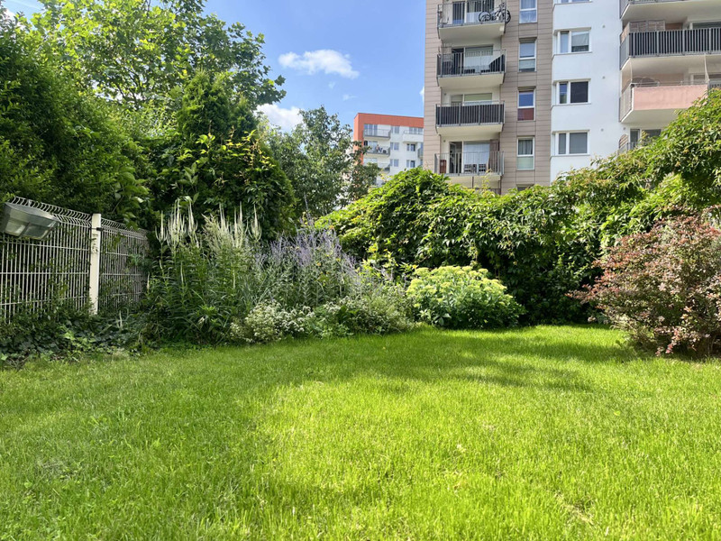 Do mieszkania przynależy ogródek w kształcie litery L, z nasadzeniami, o powierzchni ok. 142,6 m2. W ogrodzie znajduje się drewniany taras z desek ryflowanych z modrzewia syberyjskiego o powierzchni ok30m2.