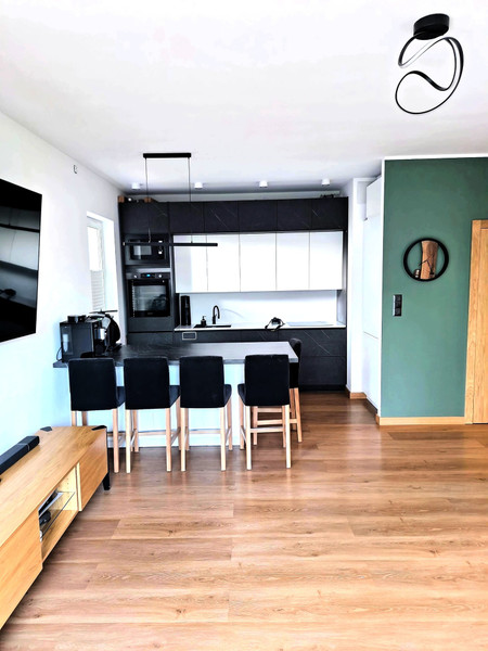 Mieszkanie jest po generalnym remoncie, przeprowadzonym w 2024 roku, podczas którego podłogi w całym mieszkaniu (oprócz łazienki, w której nie było konieczności zmiany) zostały wymienione na wytrzymałe panele winylowe w kolorze naturalnego drewna, tworząc jedną powierzchnię z salonem –aneksem kuchennym, korytarzem oraz pokojami, co nadaje estetyczny wygląd i optycznie zwiększa powierzchnię. Co więcej, na zwiększoną rzeczywistą powierzchnię wpływa wyższy niż na pozostałych piętrach sufit, o wysokości 2,73 m.