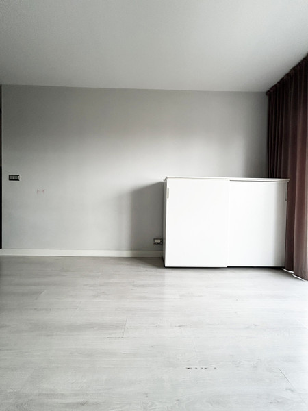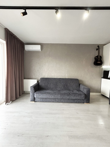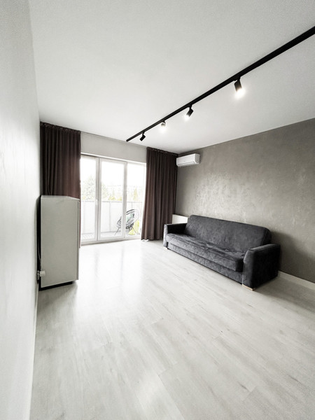 • aneks, łazienka i przedpokój posiada płyty gresowe w kolorze jasnej szarości/betonu, a pozostała powierzchnia wyłożona jest panelami w jasno-szarym kolorze