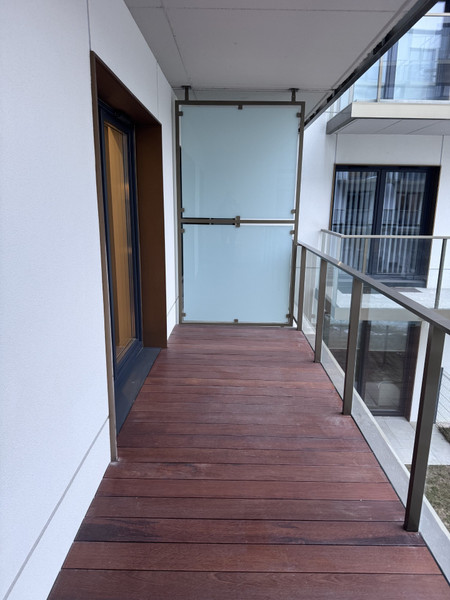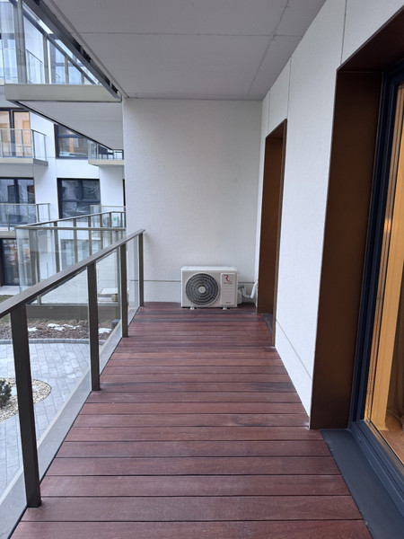 • balkon zabezpieczony przeciw wilgoci, wyłożony deską tarasową Angelim Amargoso