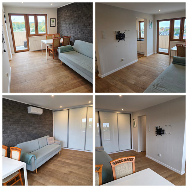 Mieszkanie 2 pokoje, oddzielna widna kuchnia, łazienka, przedpokój oraz balkon. Do mieszkania przynależy piwnica. W mieszkaniu zastosowano wyjątkowe okna marki Oknoplast wraz z roletami sterowanymi elektrycznie marki Portos. Całość roletami zabudowana, przez co nie tracisz uroku wnętrza. Okna od środka mają drewniane wykończenie co nadaje ciepła każdemu pomieszczeniu. Ponadto mieszkanie wyposażone jest w klimatyzację, która w letnie dni daje ogromny komfort użytkowania lokalu. Zimą jest możliwość grzania klimatyzacją, jednak usytuowanje mieszkania od strony południowo zachodniej powoduje, że mieszkanie jest bardzo ciepłe i dobrze nasłonecznione. Dzięki temu mieszkanie pod względem C.O. jest to bardzo ekonomiczne, a ciepło dostarcza osiedlowa kotłownia. Mieszkanie wykończone bardzo dobrymi produktami tj. ceramika Paradyż, deska Barlinek, ściany z suchej zabudowy GK marki Knauf, armatura KFA, zabudowa Geberit oraz kabina prysznicowa Radaway że składanymi drzwiami. Mieszkanie choć małe, ma rewelacyjnie zagospodarowaną przestrzeń dzięki wszechobecnej zabudowie na wymiar. W kuchni znajduje się przestronna zabudowa z lakierowanymi frontami meblowym wraz z wyposażeniem w sprzęt AGD: lodówka, piekarnik, zmywarka, płyta indukcyjna. Co ważniejsze, mieszkanie posiada nową instalację elektryczną z możliwością zasilania urządzeń do 400v (3 fazy), dzięki czemu indukcja działa na dwóch fazach. W mieszkaniu zastosowano oświetlenie LED, co zdecydowanie obniża koszty utrzymania. Ponadto zmianom poddano instalację gazową oraz wod-kan. Wszystko sprawia, że mieszkanie nie tylko jest gotowe do zamieszkania, ale również nie wymaga nakładów finansowych. Wchodzisz i mieszkasz. W każdym pokoju znajduje się pojemna szafa, podobnie jak w przedpokoju oraz zestaw szafek w łazience, przez co mieszkanie posiada ogromną powierzchnię do przechowywania. Dzięki zastosowaniu drzwi przesuwnych, w pokojach uzyskano dodatkową powierzchnię do wykorzystania. Mieszkanie jest ciepłe, suche, nie wymaga dodatkowych nakładów, bedzie rozwojowe dla pary i wystarczające dla rodziny z dwójką dzieci. Posiada wyjątkowe widoki, a brak sąsiednich bloków przed oknami daje napawać się pięknymi zachodami słońca. Mieszkanie jestbdobrze skomunikowane z uwagi na szybki dostęp do drogi krajowej, obwodnicy miasta, szybkiego dostępu do autostrady, a lokalnie szkoły, przedszkola oraz żłobek, a wszystko to w sąsiedztwie zabytkowe parku i dostępu do trasy rowerowej rozciągającej się na kilka ościennych gmin. Ponadto spokojne sąsiedztwo, dostępność placów zabaw oraz wyjątkowe zielone osiedle. To miejsce na Twoją spokojną przystań lub dobra podstawa pod inwestycję. Mieszkanie z czystą Ksiegą Wieczystą i dostępne od ręki.