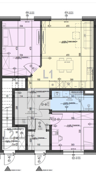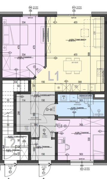 Mieszkanie o pow. 68,10m2 zlokalizowane na piętrze. W skład mieszkania wchodzą: wiatrołap o pow. 3,86m2, garderoba o pow. 2,86m2, sypialnie o pow. 10,17m2, 12,48m2, 8,98m2, salon z aneksem kuchennym o pow. 24,12m2, łazienka o pow. 5,50m2. Do mieszkania przynależy poddasze mierzone po podłodze o pow. 71,14m2. Mieszkanie posiada dwa balkony. Możliwość dokupienia poddasza w kwocie 30 000 PLN.