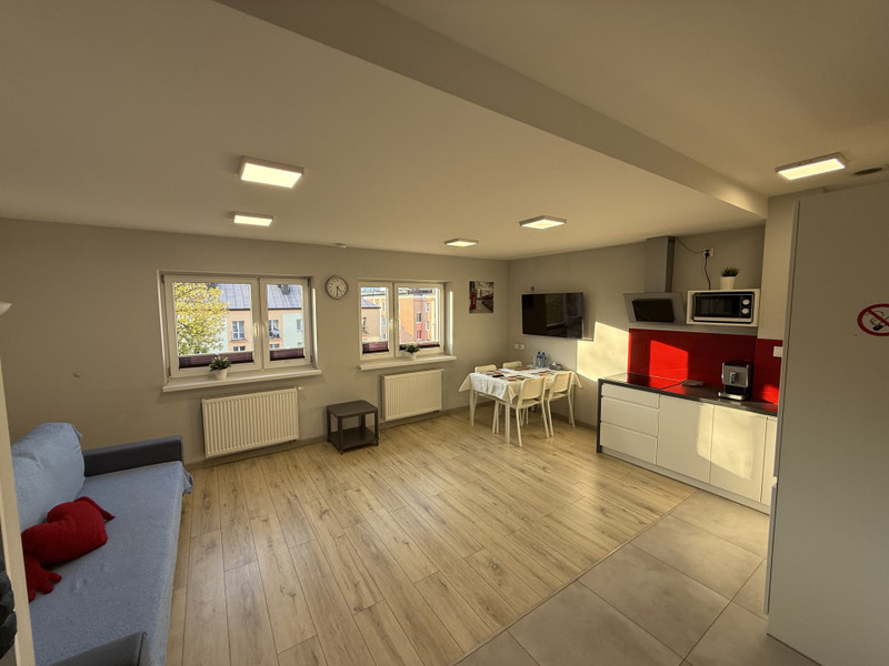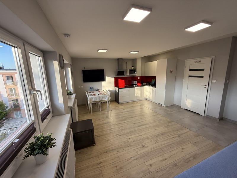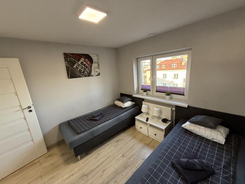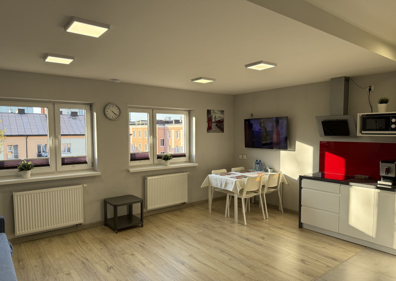 Mieszkanie znajduje w samym centrum Kielc, 400 metrów od deptaka ul. Sienkiewicza na 3 piętrze w 3 piętrowym budynku. Składa się z salonu dziennego z funkcją sypialni, łazienki z prysznicem, korytarza zabudowanego szafami oraz pokoju sypialnianego z dwoma łóżkami, które po zsunięciu tworzą duże łóżko małżeńskie 180x200 cm. Powierzchnia to 43,81m2. Mieszkanie jest absolutnie w pełni wyposażone i można wprowadzić się z walizkami na gotowe, nie trzeba robić już żadnych remontów czy wyposażać w sprzęt RTV, są nawet sztućce i szklanki. Mieszkanie wyposażone w klimatyzacje i niezależne ogrzewanie bezpiecznym nowoczesnym piecem gazowym dwufunkcyjnym z zamkniętą komora spalania. Cały korytarz, cześć salonu i kuchnia oraz łazienka wyposażona w ogrzewanie wodne podłogowe co sprawia niesamowity komfort w okresie zimowym. W sypialniach grzejniki. W mieszkaniu wszystkie instalacje są nowe i kompletne łącznie z TV Vectra. Nowe drzwi antywłamaniowe o podwyższonych parametrach dźwiękoszczelnych. W cenie mieszkania pełne wyposażenie meblowe, 2 x TV LED, klimatyzacja, oraz łóżka i w pełni wyposażona kuchnia ze zmywarką oraz nowa pralka. Budynek kilka lat temu przeszedł gruntowny remont klatek schodowych i został ocieplony wraz z nową elewacją.Okna sypialni skierowane są na wschód, a salony na zachód. Mieszkanie obecnie pracuje i przynosi dobry dochód jako najem krótkoterminowy. Mam jeszcze do sprzedania bardzo podobne mieszkanie sąsiadujące z opisywanym również pracujące jako najem krótkoterminowy, oba posiadają nowoczesny system zarządzania. To drugie również wystawione w tym serwisie. Kupując dwa mamy gotowy dochodowy biznes z historią na portalach i stałymi klientami.