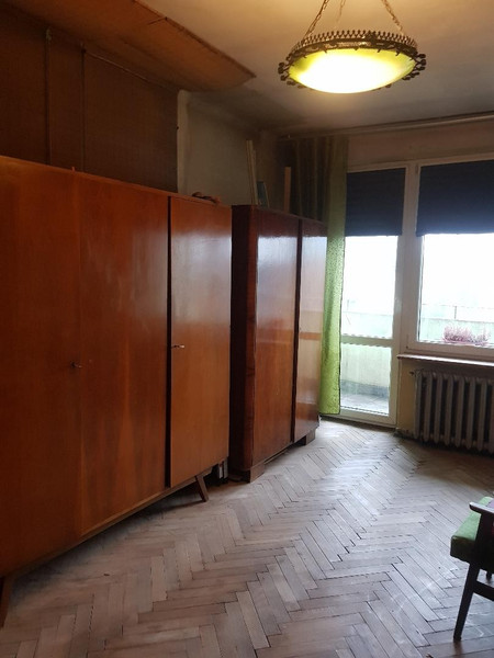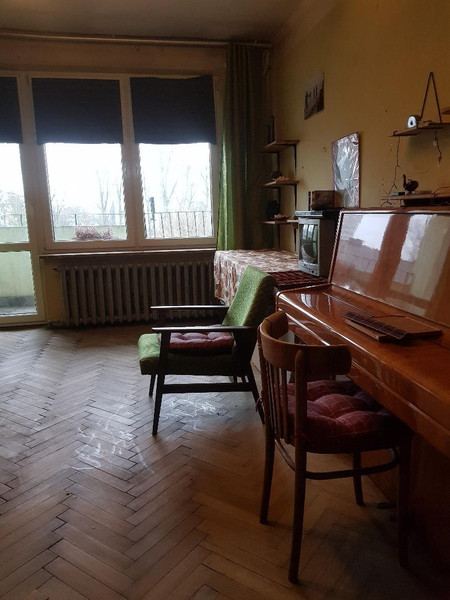 W większym pokoju jest parkiet jesionowy , oryginalny z lat 60 tych , nadaje się do cyklinowania. reszta podłóg i łazienka są do remontu.