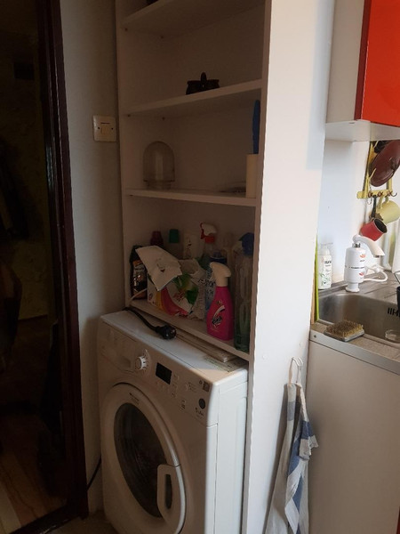 Kuchnia jest wyremontowana w zabudowie w kolorach białym i czerwonym, kuchenka gazowa, piecyk elektryczny , miejsce pod zlewem na mała zmywarkę typu Dishdrawer. Firma Fisher and Paykel takie produkuje. W zabudowie kuchennej jest pralka, która mogłaby zostać po sprzedaży mieszkania, gdyż jest dokładnie dopasowana do szafki, a łazienka jest zbyt mała.