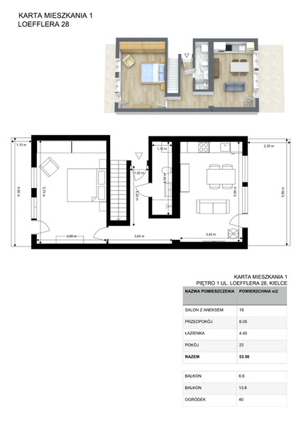 W inwestycji znajdują się lokale o powierzchniach od 27 m² do 53 m², zaprojektowane z myślą o wygodzie mieszkańców i funkcjonalnym wykorzystaniu przestrzeni.