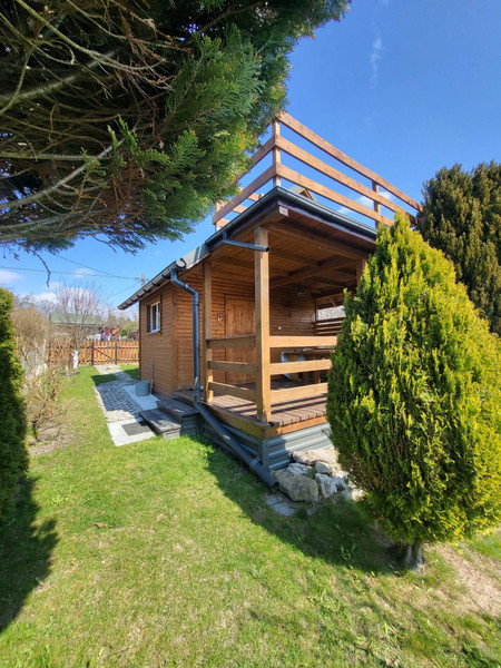 W odległości około 1km posiadamy na sprzedaż również piękny drewniany domek postawiony na terenie "ROD".