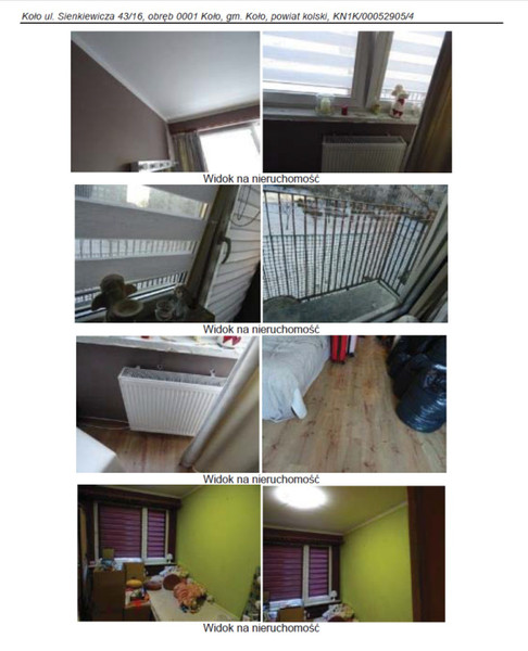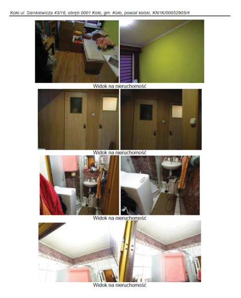 Konkurs na sprzedaż udziału w wysokości 1/2 w spółdzielczym własnościowym prawie do lokalu mieszkalnego nr 16 położonego w Kole przy ul. Sienkiewicza 43 o powierzchni użytkowej 39,01 m2 dla której Sąd Rejonowy w Kole, V Wydział Ksiąg Wieczystych prowadzi księgę wieczystą numer KN1K/00052905/4, cena wywoławcza 41.880,00 zł (słownie: czterdzieści jeden tysięcy osiemset osiemdziesiąt złotych 00/100).