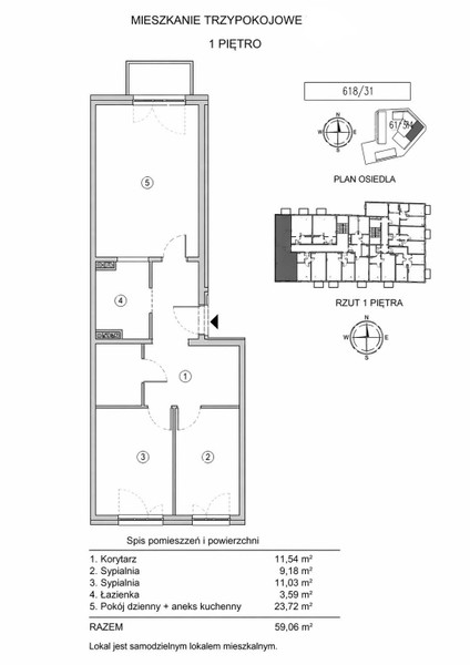 • 3 niezależne pokoje – bardzo funkcjonalny układ