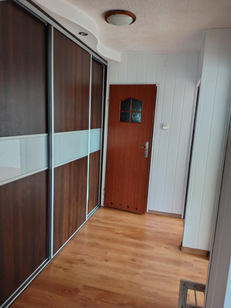 * Długi przedpokój z wbudowaną szafą przesuwną