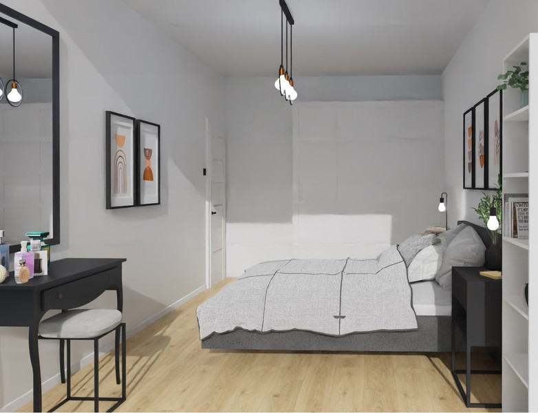 W zdjęciach przedstawione są wizualizacje oraz obecny stan mieszkania