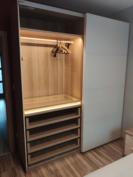 • sypialnia 1: łóżko MALM z materacem, szafa PAX, komoda MALM, szafki nocne