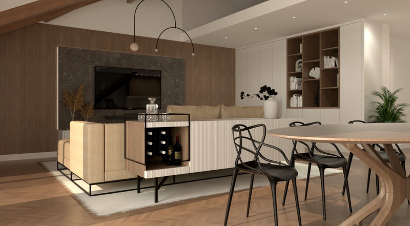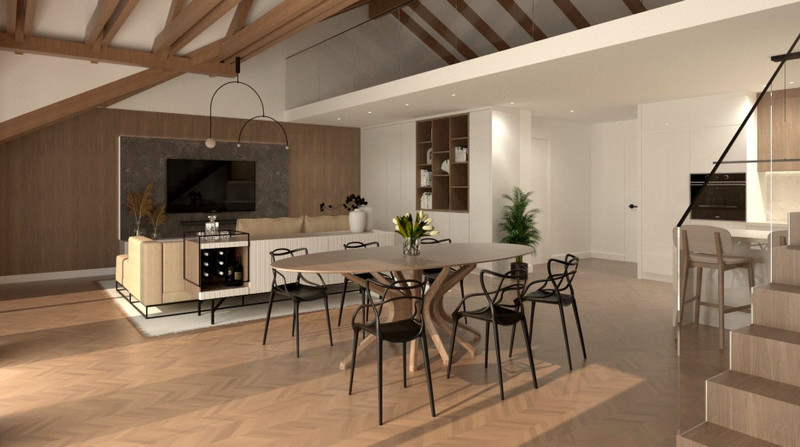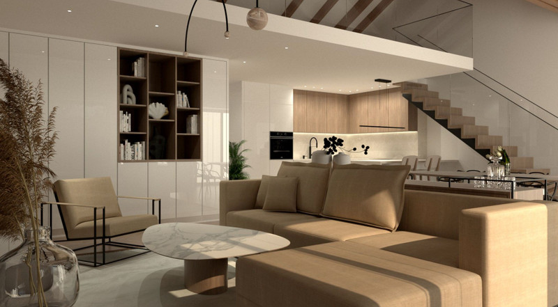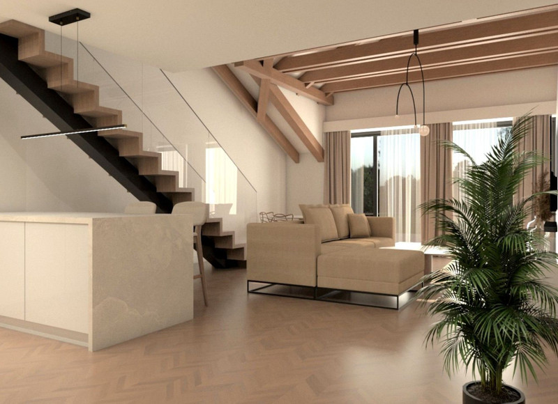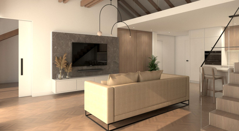 MIESZKANIE 95 M2 Z MOŻLIWOŚCIĄ ANTRESOLI 33 M2 PRZY PODOŁODZE (ANTRESOLA W OPCJI ZA DODATKOWĄ KWOTĘ) - SUFIT KATEDRALNY W SALONIE