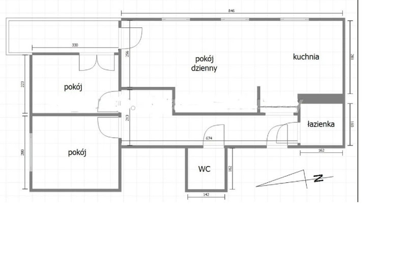 - pokoju (obecnie pokój pusty, jedynie szafa zabudowana.