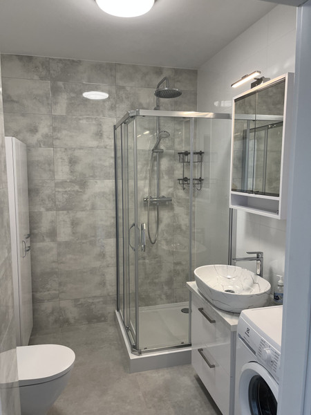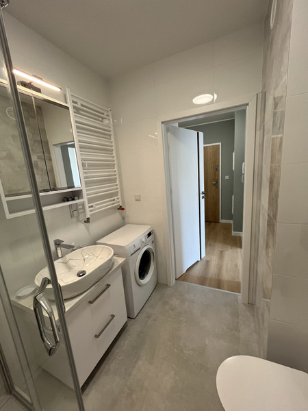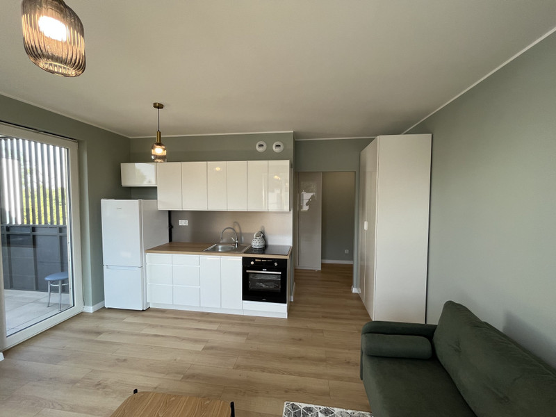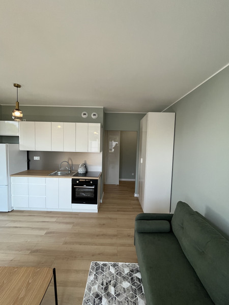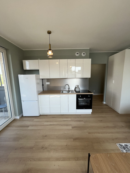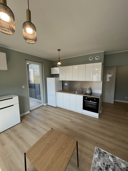 Posiada niezbędne wyposażenie - płytę elektryczną, lodówkę, pralkę, itp.