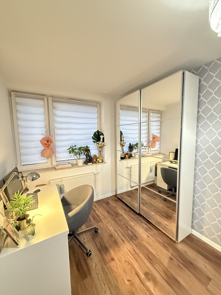 Mieszkanie urządzone w neutralnym, ponadczasowym stylu, gotowe do zamieszkania. Bardzo dobra lokalizacja – świetne połączenie komunikacyjne z centrum miasta, w bezpośrednim sąsiedztwie zieleni.