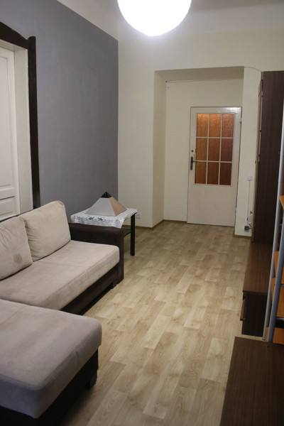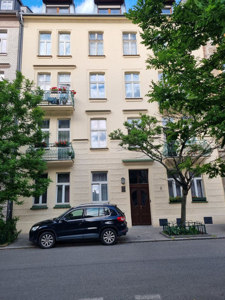 Mieszkanie o powierzchni 79,1 m2 mieści się na parterze czteropiętrowej kamienicy z 1914 roku. Składa się z trzech dużych, oddzielnych pokoi, osobnej kuchni, łazienki oraz przedpokoju.