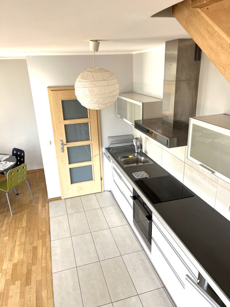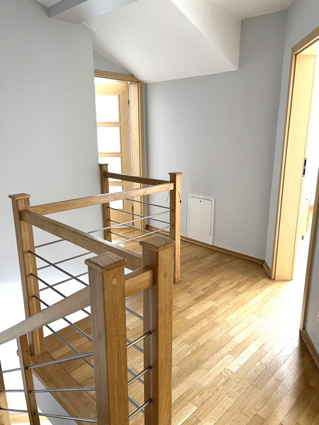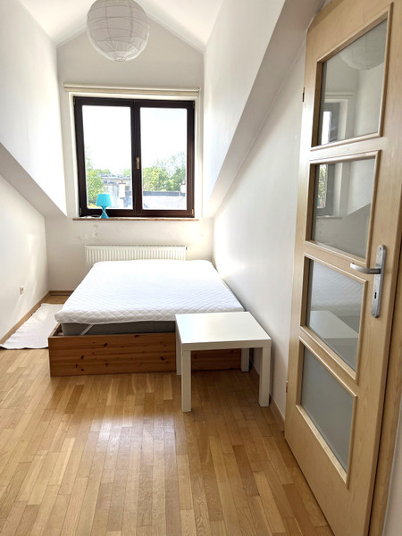 Mieszkanie wykończone w bardzo dobrym standardzie, okna derwniane, podłogi: parkiet, schody drewniane.