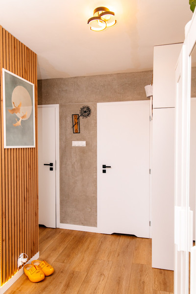 • remont przedpokoju (ściany, sufit, szafy, drzwi wejściowe Gerda, listwy przypodłogowe, domofon),
