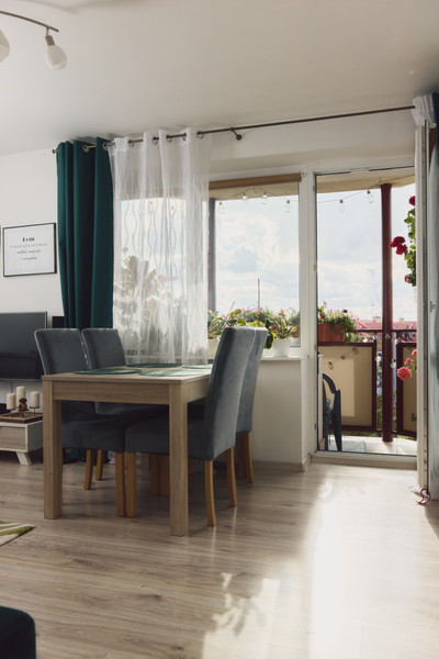 W salonie – wygodny dostęp do balkonu, idealnej do wypoczynku na świeżym powietrzu.