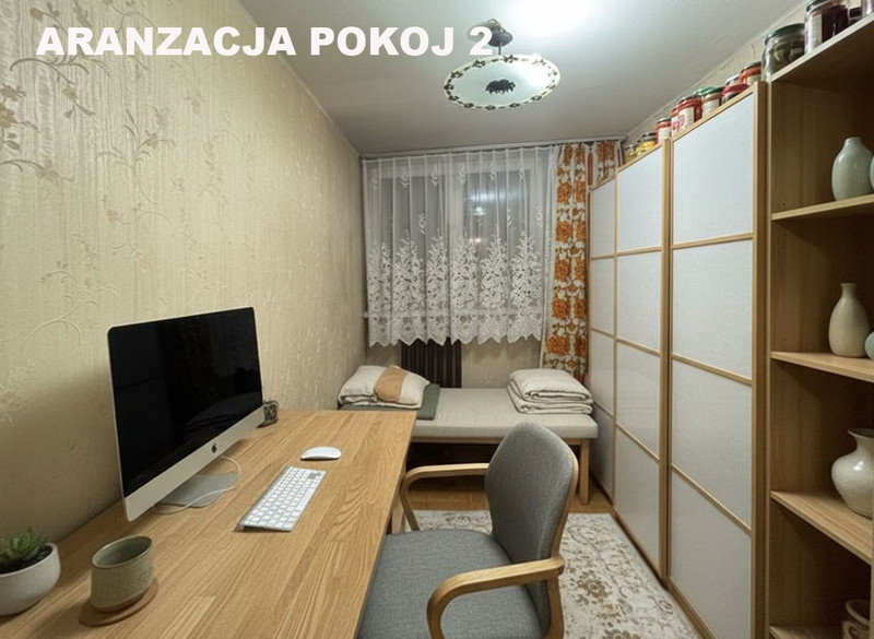 • duży pokój z wyjściem na balkon (sypialnia lub salon),