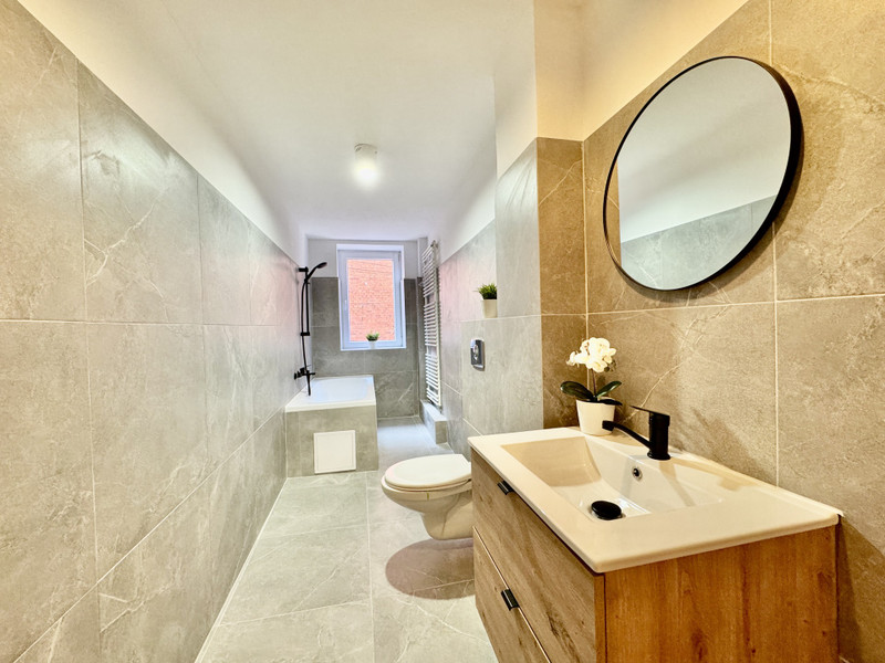 Odmalowano ściany, położono nowe panele w kuchni, korytarzu oraz pokojach. W łazience położono nowoczesne i stylowe kafelki, zamontowano nową wannę, toaletę, szafkę z umywalką wraz z nową baterią oraz pięknym lustrem.