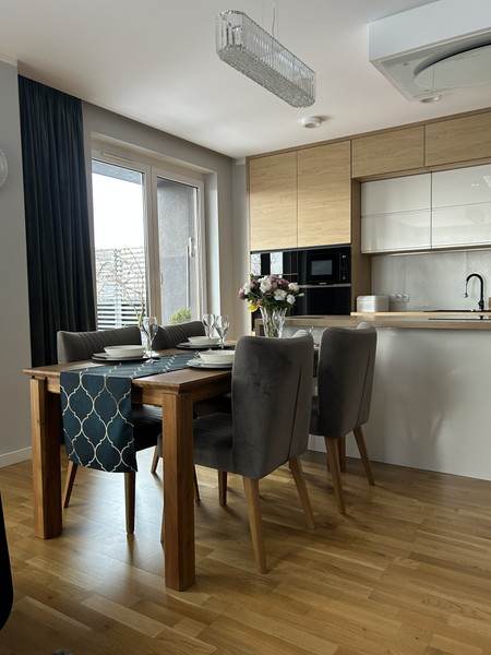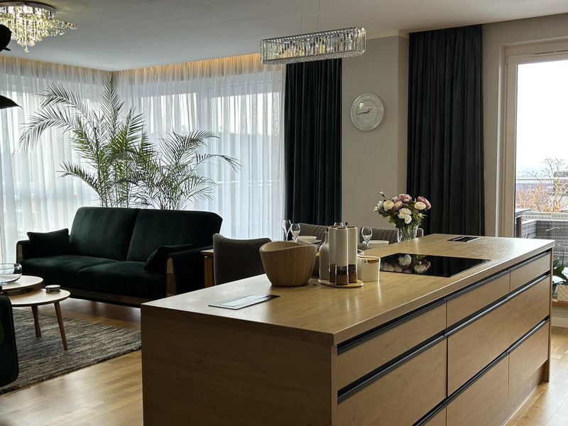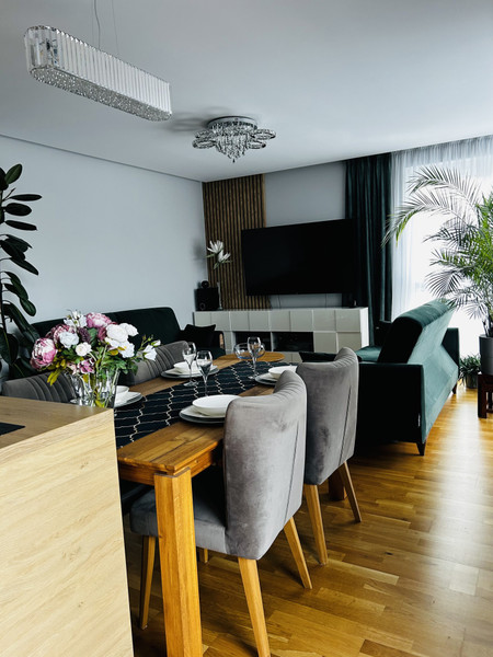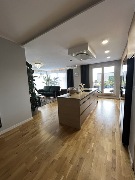 Przestronna, jasna i nowoczesna, zaprojektowana tak, by mieszkanie było komfortowe, funkcjonalne i ponadczasowe. Wygodne połączenie salonu z kuchnią sprawia, ze to idealne miejsce do życia, odpoczynku i spędzania czasu z bliskimi.