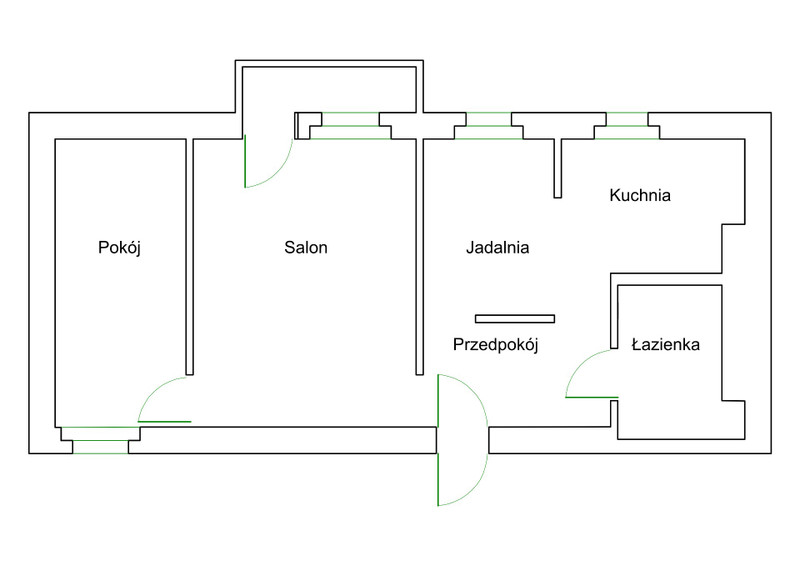 • Pokój, salon, pokój przekształcony w jadalnię, kuchnia, łazienka, balkon