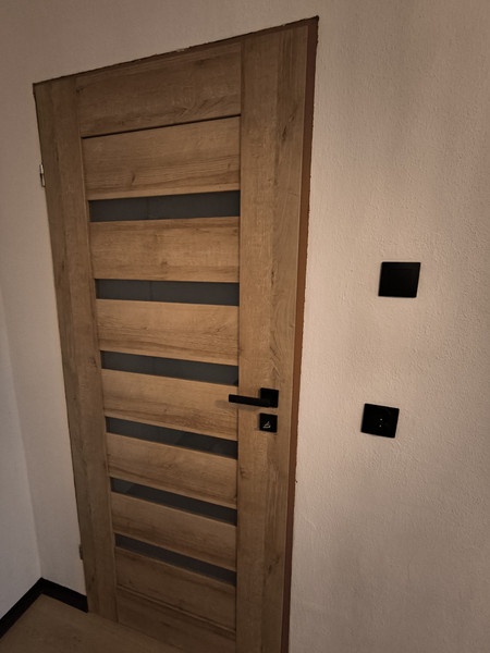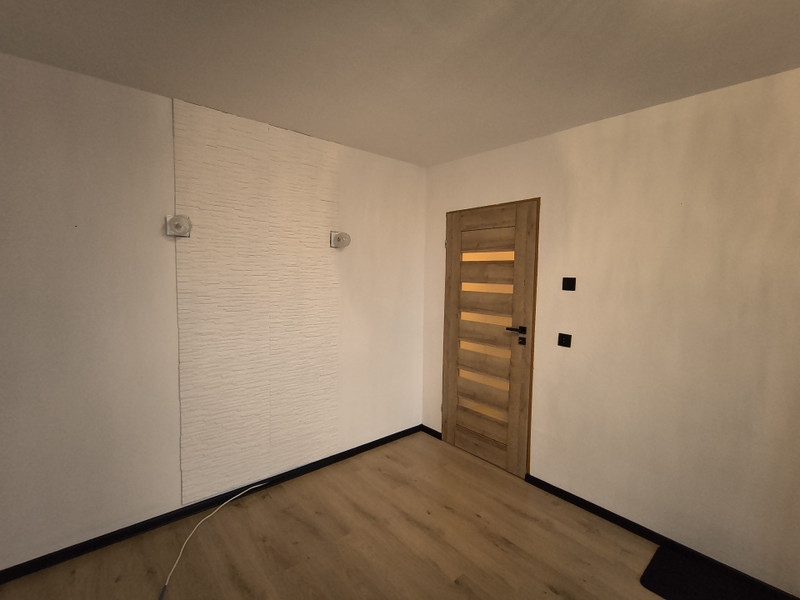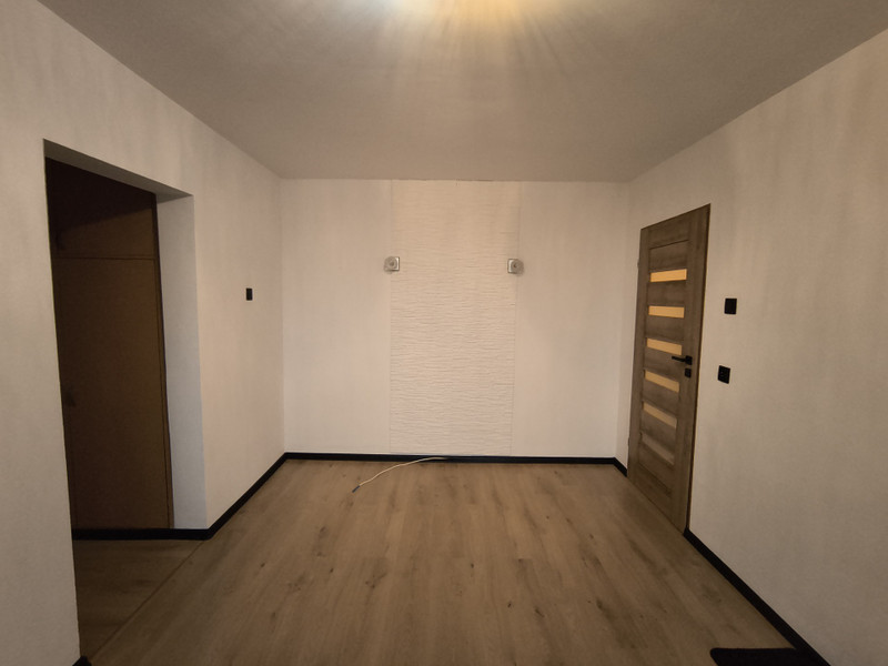 Nowe panele, drzwi, gniazdka i włączniki, mieszkanie świeżo pomalowane, w kuchni nowe panele ścienne.