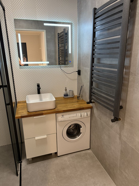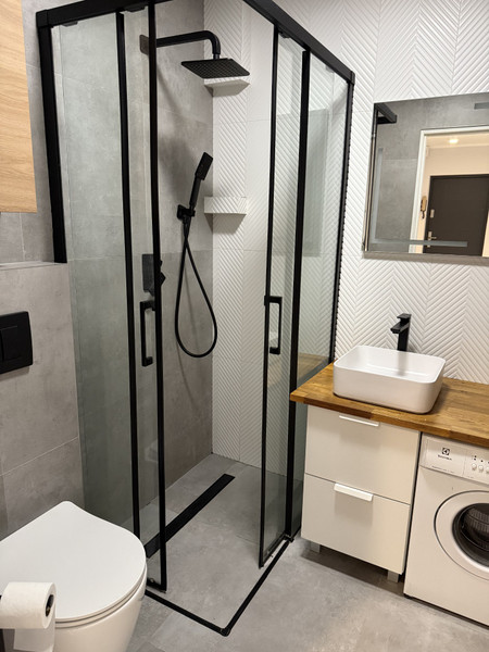 • łazienka z prysznicem i pralką