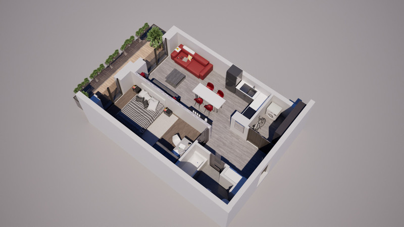 Oferujemy mieszkanie o powierzchni 50,30 m² z odrębną sypialnią, pojemną garderobą, aneks kuchenny połączony z salonem, łazienka, przedpokój, nowoczesny balkon i przeszklenia w standardzie deweloperskim. Na terenie inwestycji znajduje się także plac zabaw. To ostatnie z mieszkań na tym osiedlu, które składa się z pięciu nowoczesnych bloków.