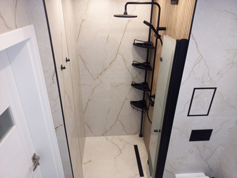 - duża, komfortowa strefa prysznicowa z odpływem liniowym i baterią termostatyczną