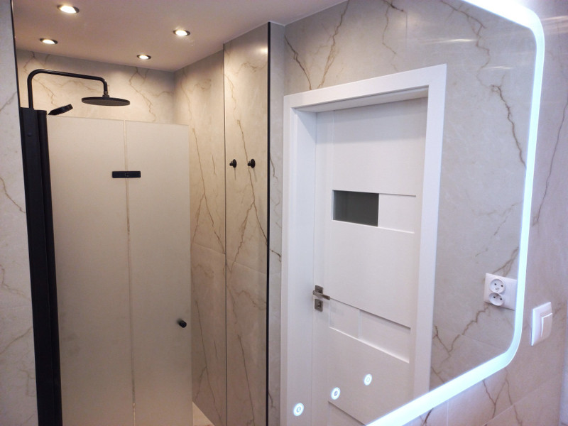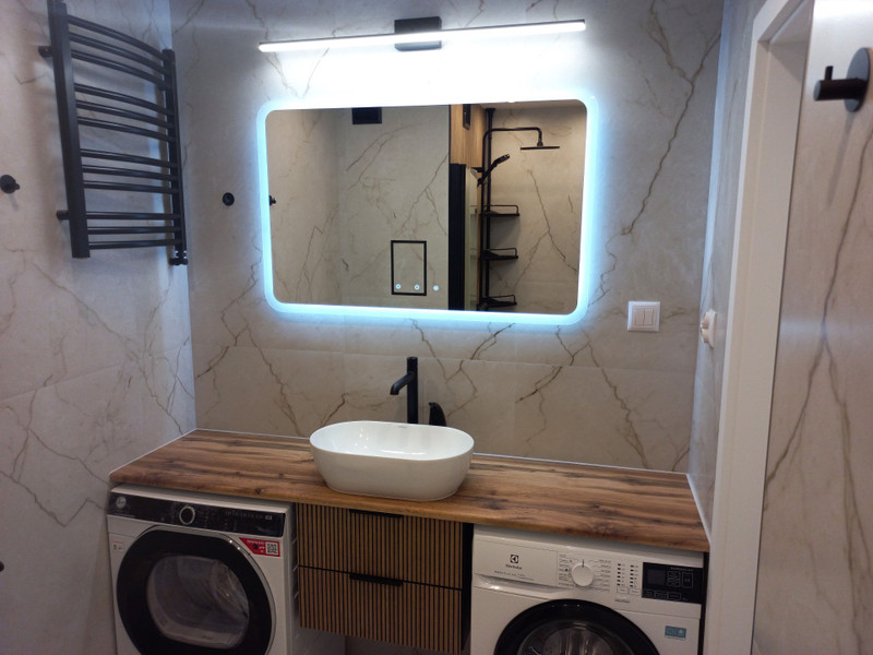 - piękna, nowa łazienka wykończona w klasie premium z dużym lustrem i nowym wyposażeniem