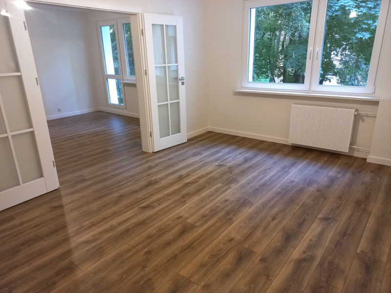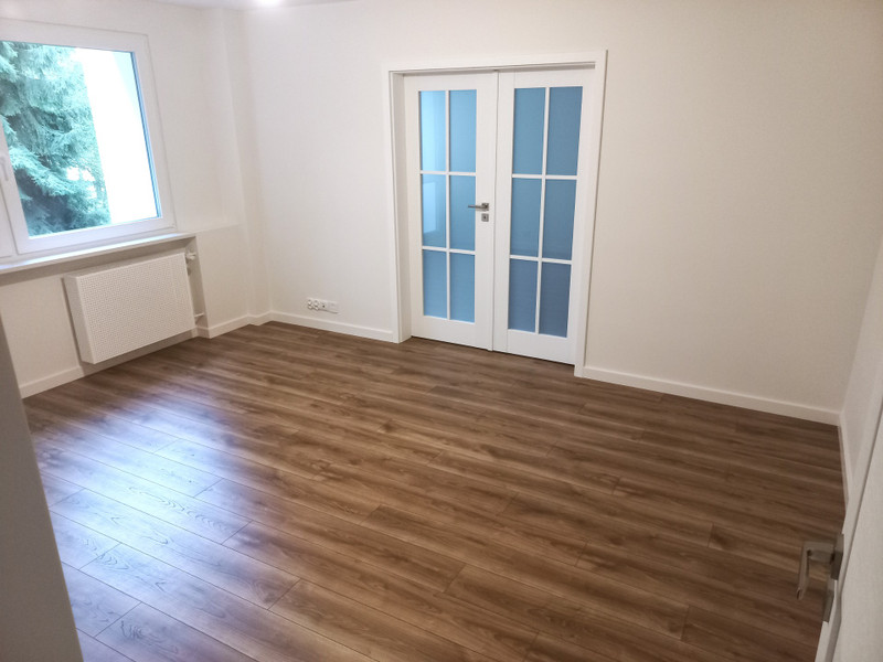 - wysoki poziom wykończeń pokoi i podłóg na co składa się m.in. prostowanie ścian i podłóg, wykonanie wylewki, położenie nowych tynków i gładzi, pomalowanie wszystkich ścian i sufitów oraz położenie solidnych paneli podłogowych 3D z V-fugą o grubości 10mm wraz z listwami VOX Espumo.