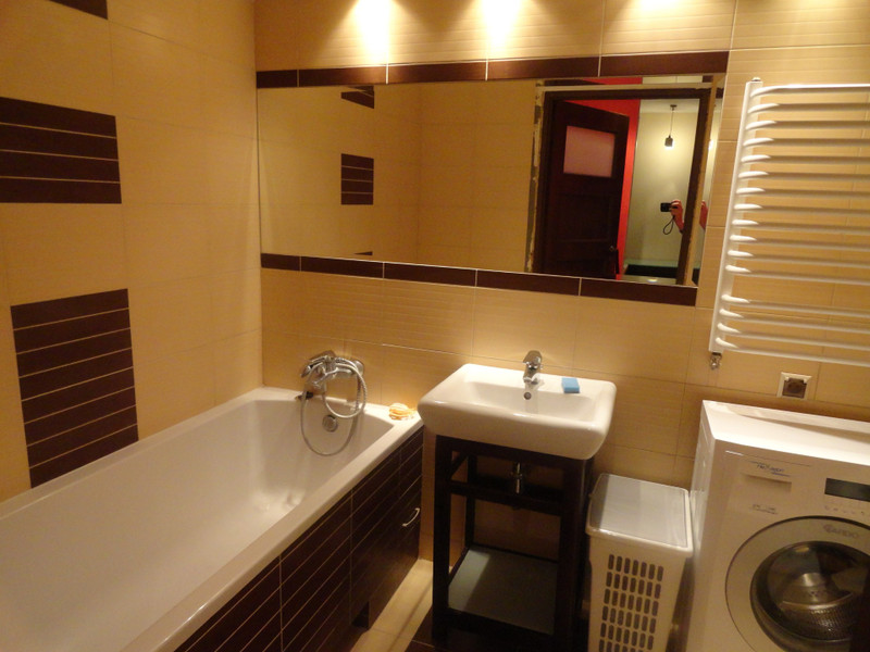 - W pełni wyposażone: zabudowa kuchenna, piekarnik, lodówka, pralka