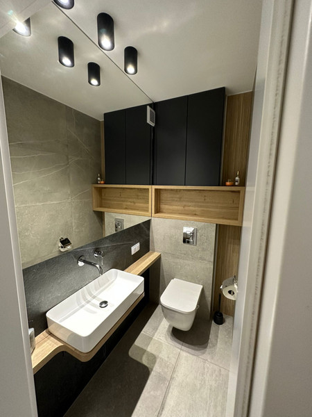 Mieszkanie w bardzo dobrym stanie gdyz bylo zamieszkale przez nas jedynie rok czasu , wykonczone jest w podwyzszonym standardzie przy urzyciu materialow bardzo dobrej jakosci .